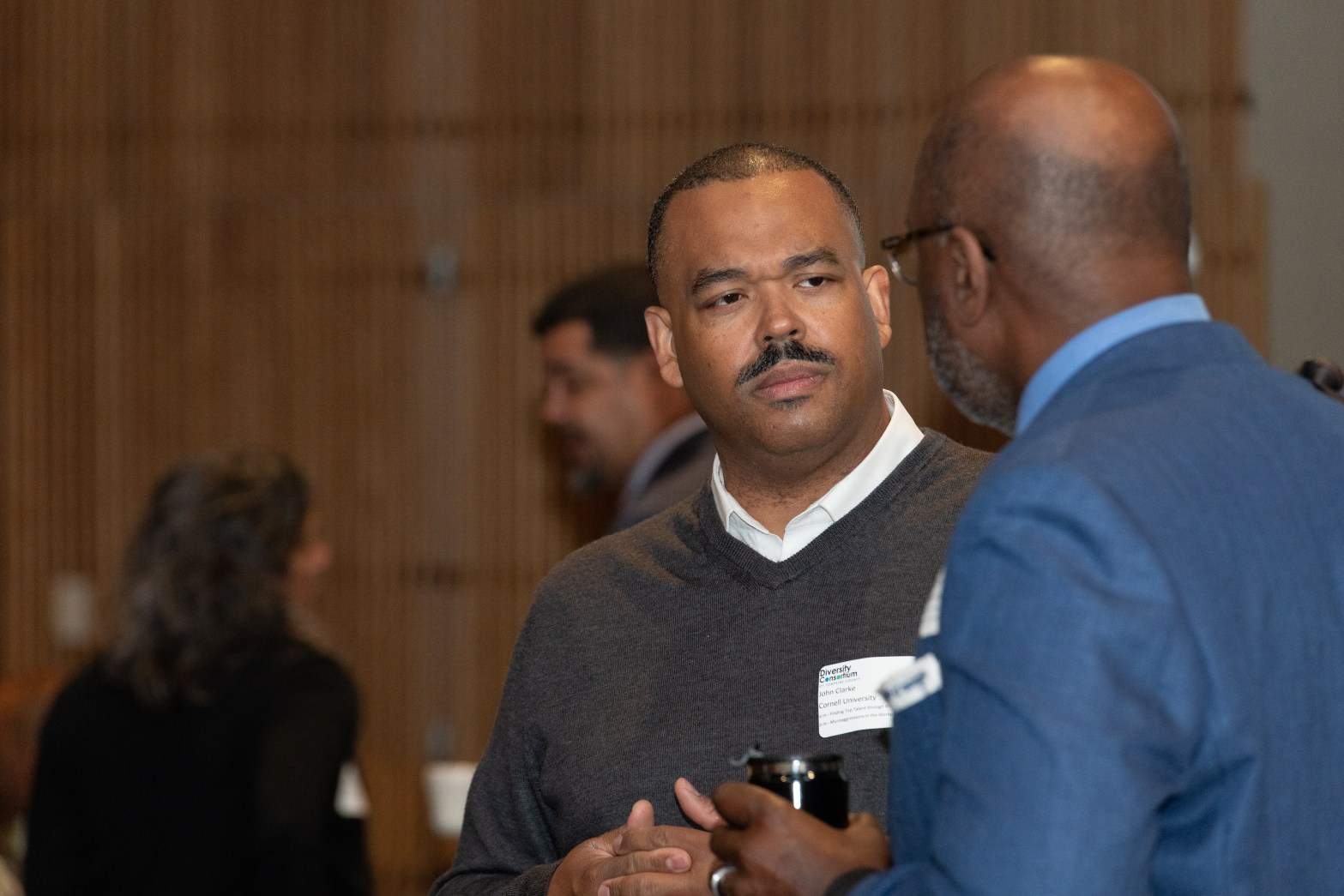 John Clarke and another gentleman talking